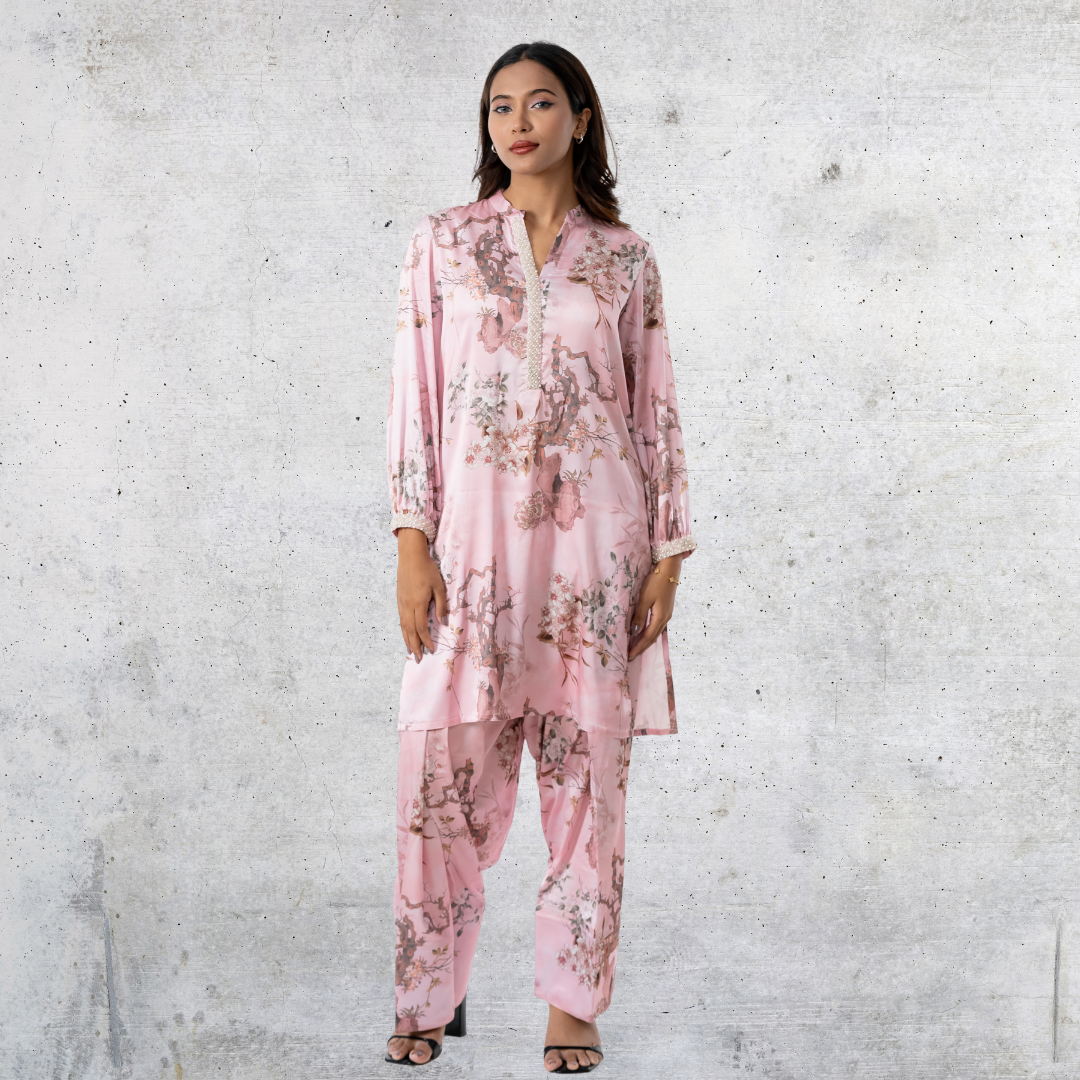 Women's AOP Rayon Silk Co-Ord Pink